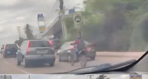 Video capta momento en que motoristas arremeten contra vehículo con madre...