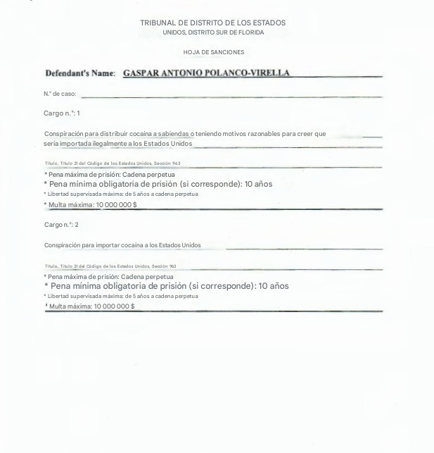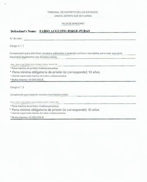 En caso de ser declarados culpables, Jorge Puras y Polanco Virella enfrentarían sanciones severas que incluyen penas de 10 años hasta cadena perpetua. Asimismo, podrían recibir multas de hasta 10 millones de dólares y el decomiso de propiedades, cuentas bancarias y activos millonarios presuntamente derivados del narcotráfico internacional.