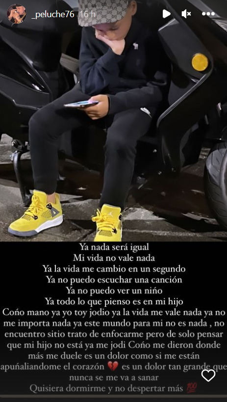 Ya nada será igual. Ya la vida me cambio en un segundo. Ya no puedo escuchar una canción. Ya no puedo ver un niño. C0ño mano ya yo toy jodio, ya la vida me vale nada ya no encuentro sitio trato de enfocarme, pero de solo pensar que mi hijo no está ya me jodi. Coño me dieron donde más me duele es un dolor como si me están apunaliandome el corazon es un dolor tan grande que nunca se me va a sanar. Quisiera dormirme y no despertar más, publicó Sergio Luis Féliz en su cuenta personal de Instagram.