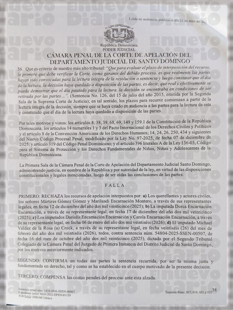 La decisión judicial está relacionada con el caso de la adolescente Mayelin Gómez Encarnación, ocurrido en el año 2021 en Santo Domingo Este.