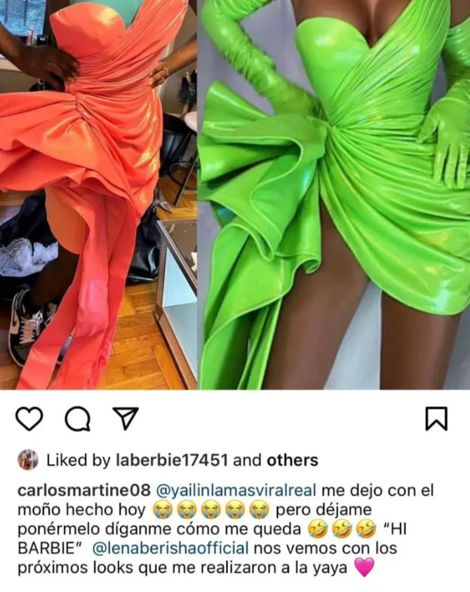 En la publicación se puede observar nada más y nada menos que el vestido que tenía preparado para la cantante dominicana Yailin La Más Viral, el cual usaría para los Premios Juventud, al que bien se sabe no se pudo presentar.