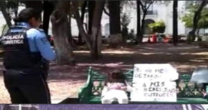 VIDEO CON LAGRIMAS EN LOS OJOS, MUJER AMARRA A UNA BANCA...