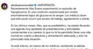 Alex Bueno se encuentra en reposo tras episodio de hipoglucemia